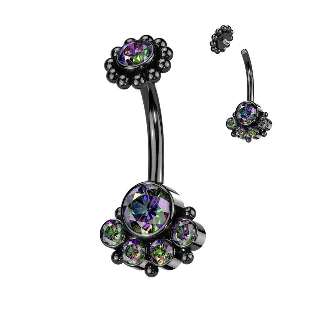 5 Round Bezel Set CZ With Balls and Bezel Set CZ Center and Beaded Ball Edge Top Internally Threaded 316L Surgical Steel Belly Ring 14 GA 3/8"